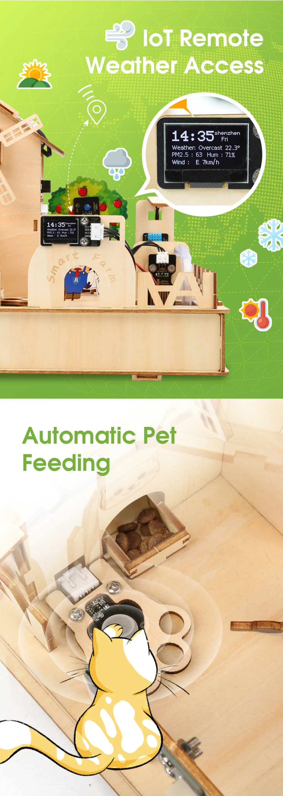 - Pet feeding (yemleme) modülü ile motor/servo kontrolünü pratikleştirir.